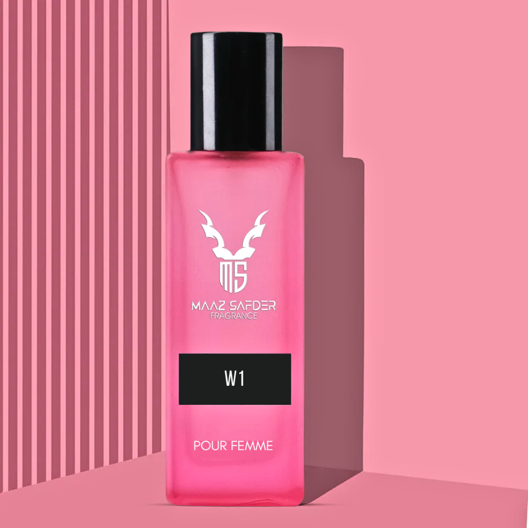 Embrace the delicate beauty of W1, a fragrance that unveils a sweet, floral symphony. The heart of All White Roses, Jasmine, and Orange Blossom creates a soft, romantic bouquet, while the sweet floral notes linger like a whisper. Presented in a dreamy, pastel pink and gold scene, the hot pink bottle captures the essence of elegance and femininity, making W1 a fragrance that leaves an unforgettable impression.